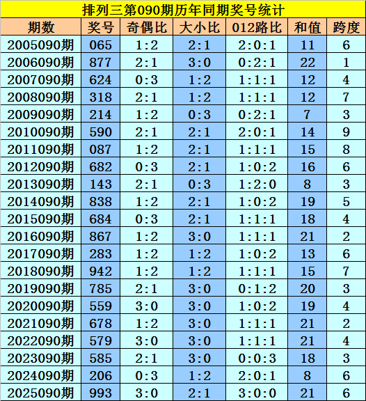 开奖回顾:排列三第2026089期开出奖号216,奖号012路比为1:1:1,大小比为1:2,奇偶比为1:2,最近三年第090期同期开出奖号为:第2023090期:585、第2024090期:206、第2025090期:993。